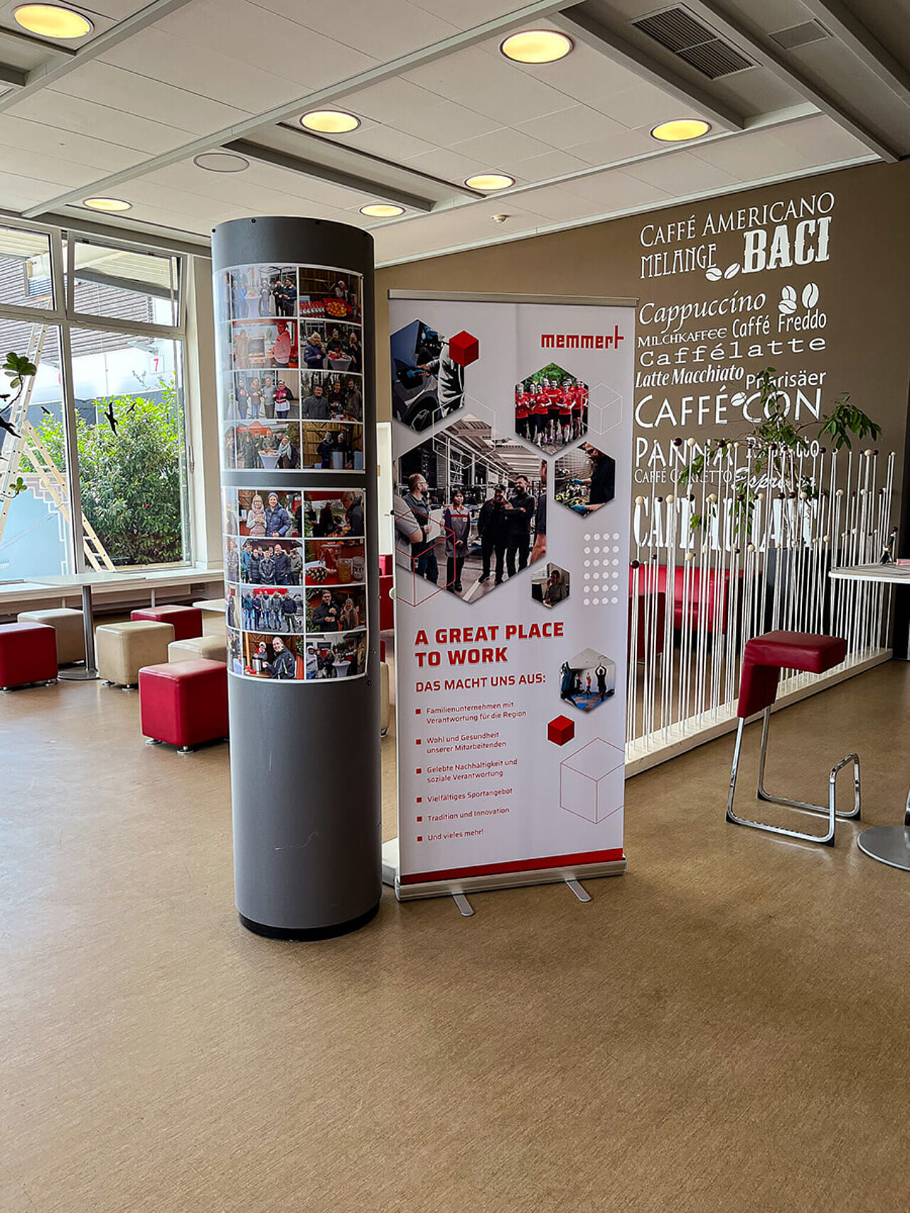 Im HR-Bereich konnte man sich an verschiedenen Stationen über neun unserer Ausbildungsberufe informieren oder selbst einmal ran: Am Stand der Kältetechnik konnte man sich einen Schlüsselanhänger aus Kuperrohren fertigen, bei der Elektronik eine Platine mit LEDs löten, bei der Fachinformatik einen Laptop reparieren oder sich beim Programmieren ausprobieren. Am Mechatronik-Stand durften unsere Gäste Blechtiere falten und sich in der sogenannten „Game Zone“ beim Virtual Reality-Tischkicker und dem neuen Azubi-Projekt „Memmert Pinball Chamber“ amüsieren.