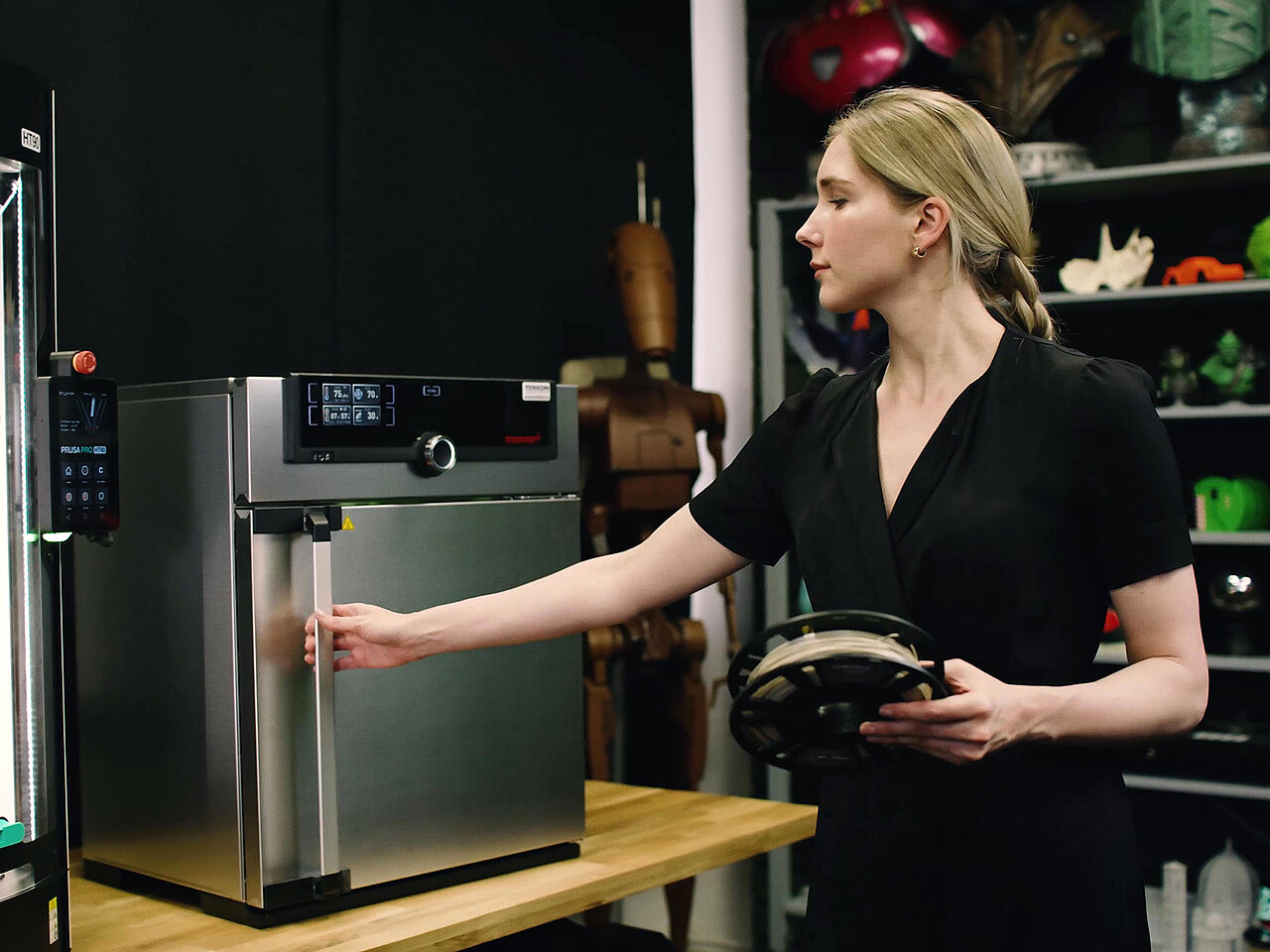 Die kompakten Abmessungen und das durchdachte Design des UF30 erlauben Prusa eine nahtlose Einbettung in bestehende Prozesse ohne große Umbauten. Außerdem kann das Gerät flexibel mit dem Prusa Pro Filament Drybox kombiniert werden, um erneute Feuchtigkeitsaufnahme zu vermeiden.