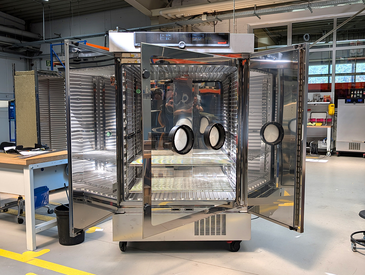 For PS Biopolymer, based in Walsrode, the m360 team developed a customized version of the ICH750 climate chamber – equipped with two iris ports and a large interior glass door instead of the standard double door.